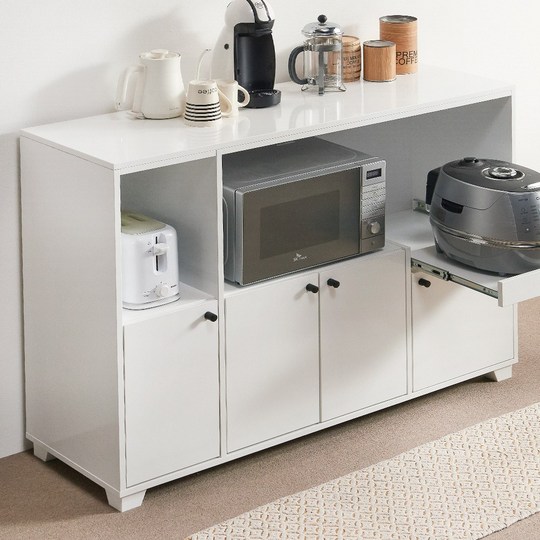 - 수납 공간 확보: 밥솥, 전자레인지, 토스터기 등 다양한 주방 가전을 한 곳에 수납하고, 남는 공간에는 식기, 조리 도구, 식재료 등을 보관할 수 있습니다.