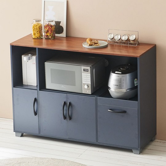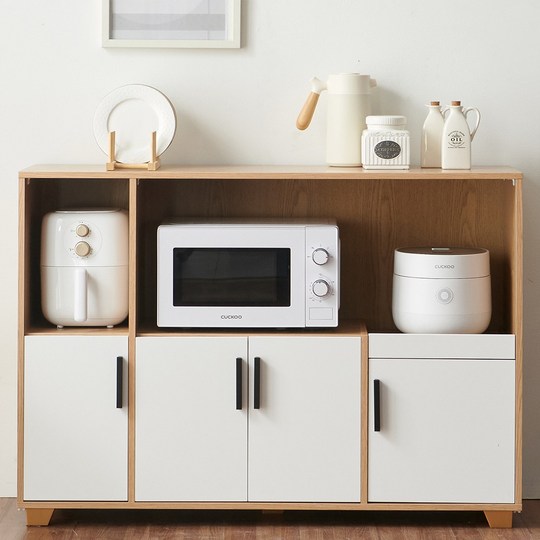 - 수납 공간: 밥솥, 전자레인지를 위한 공간 외에도 서랍, 선반, 도어 수납장 등 다양한 수납 공간을 제공하여 효율적인 수납이 가능합니다.